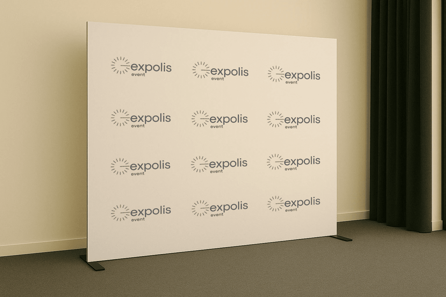 Structures personnalisables en bois habillées de bâches imprimées selon vos visuels. Idéales pour les entrées d’événements et les fonds de scène personnalisés.