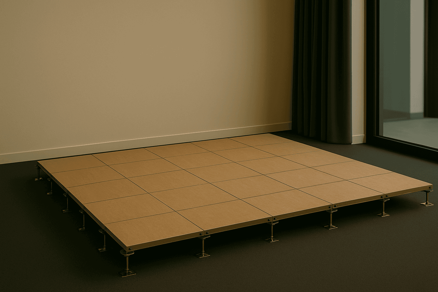 Surface modulaire pour créer des espaces parfaitement nivelés et sécurisés, idéale pour les événements en extérieur.