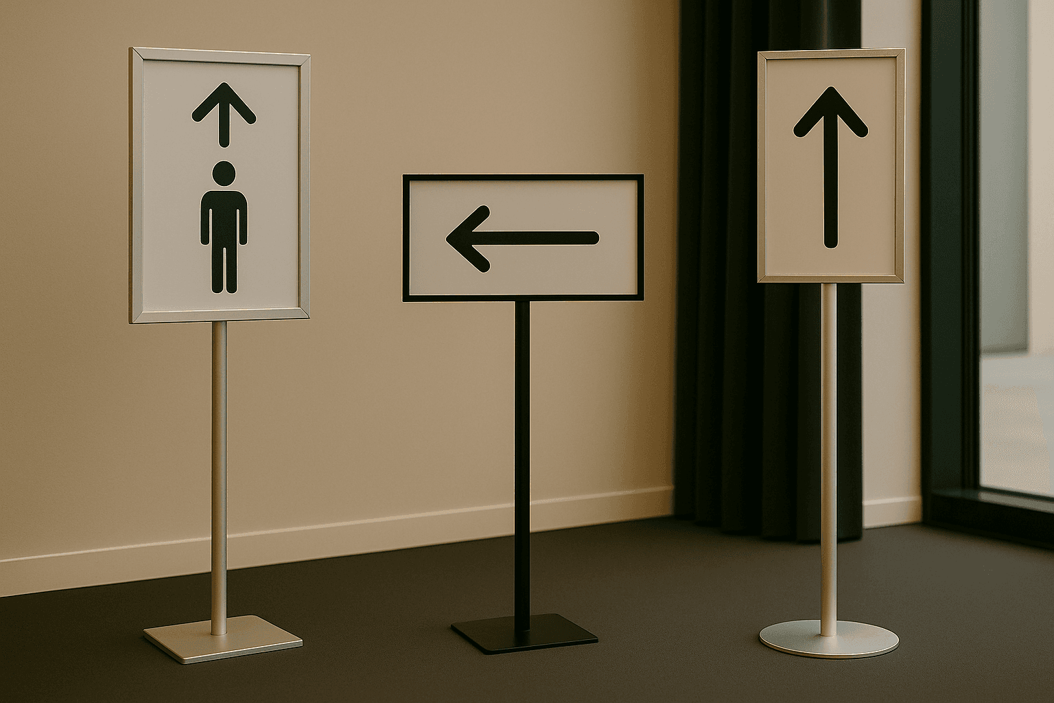 Supports d'affichage verticaux pour orienter vos visiteurs et communiquer efficacement vos informations.