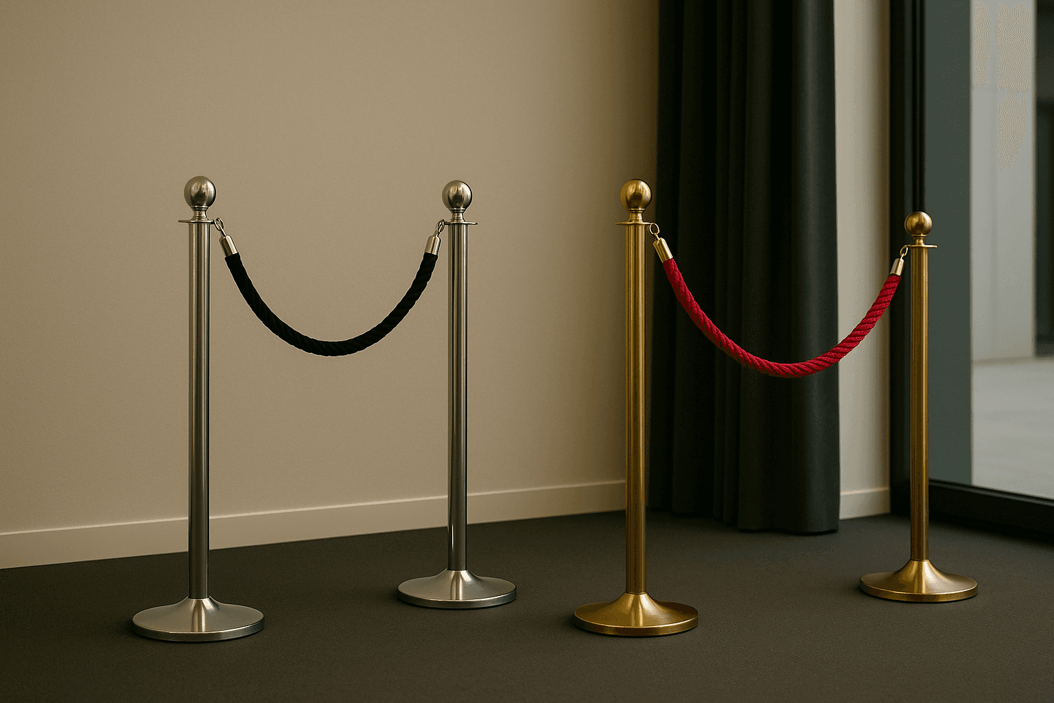 Systèmes élégants avec cordons pour délimiter des zones, créer des files d'attente ou guider vos invités.