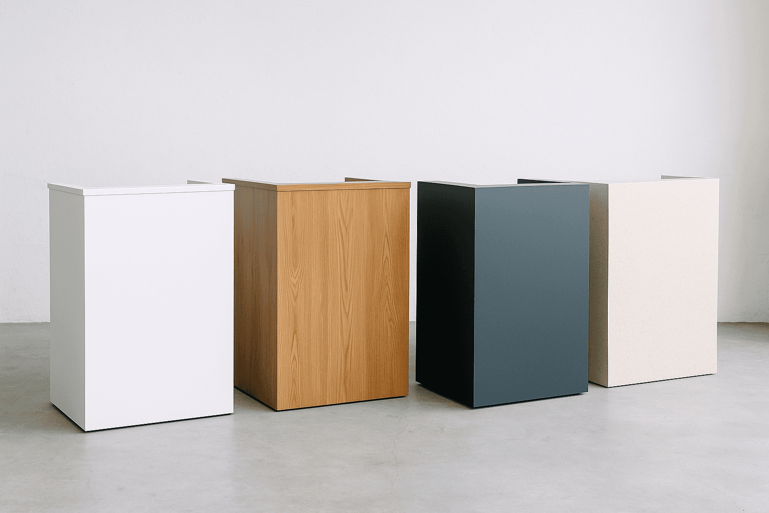 Meubles élégants pour la présentation de produits, l'exposition de documents ou la décoration d'espaces.